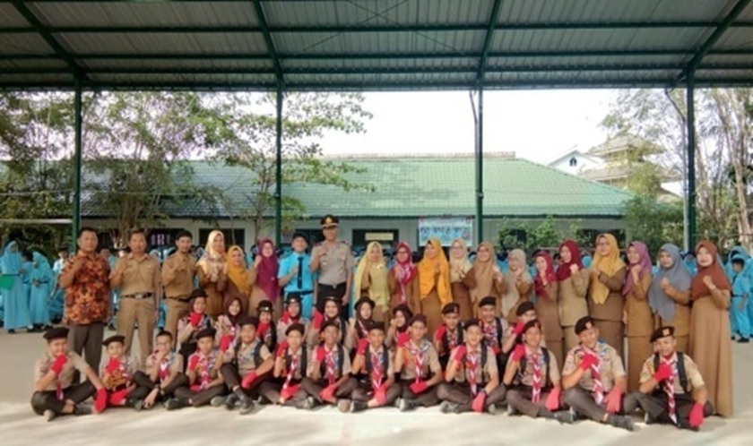 Kapolsek Pandan dengan Pramuka SMP Al-Muslimin Pandan